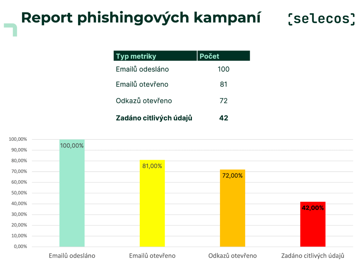 To potvrzují i studie, kde 82 % případů prolomení kybernetické bezpečnosti zahrnovalo lidské pochybení. Proto phishing patří mezi nejčastější a nejúčinnější kybernetické útoky. To potvrzuje i naše vlastní statistika posledních 1000 odeslaných testovacích phishingových e-mailů: